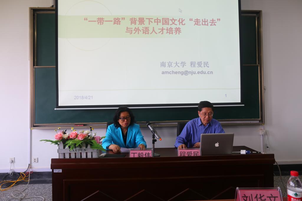 聘任仪式结束后,两位教授为参加“2018年度天印外语高层论坛”的师生做了精彩的报告。程爱民教授报告的题目为““一带一路’背景下中国文化‘走出去’与外语人才培养”。他认为,中国文化“走出去”是“一带一路”倡议的重要组成部分,面临“后真相、后西方、后秩序”战略机遇和五大挑战,外语教育与人才培养是中国文化“走出去”的基础工程和战略保障。吴文智教授结合个人三十余年的翻译实践历程,简要评析了我国外语翻译的现状,提出翻译工作者必备的心态和基本素质,介绍了不同体裁文本的翻译策略,并对有志于从事翻译实践和研究的中青年教师提出了中肯的建议。