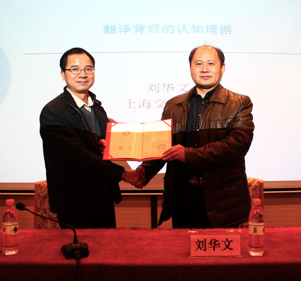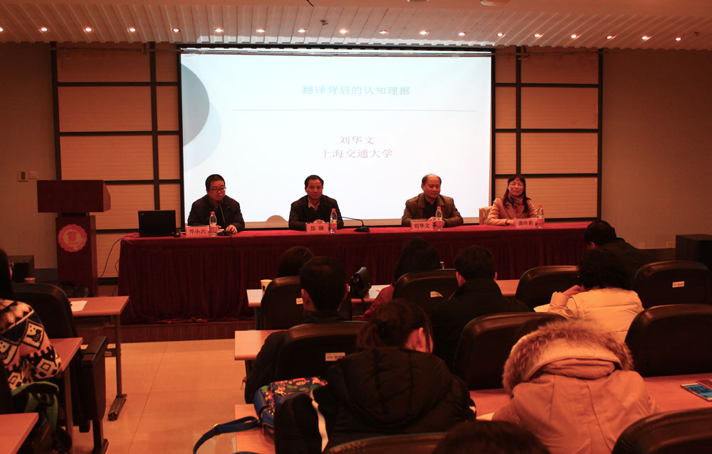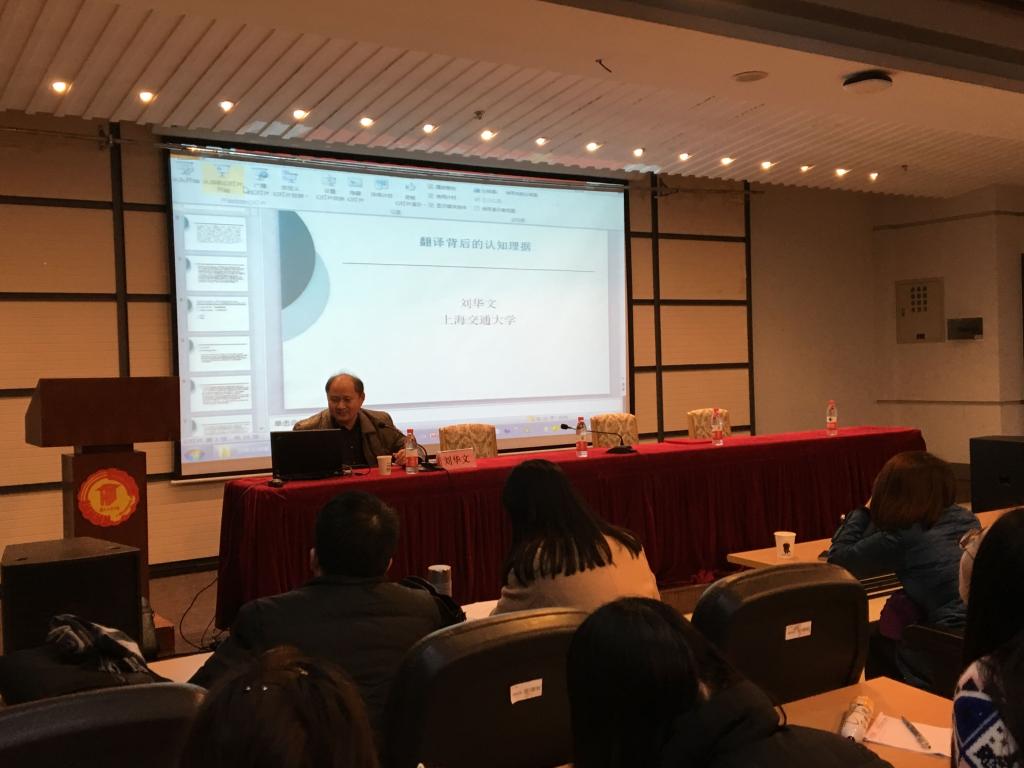 2016年12月21日下午,应外国语学院邀请,上海交通大学博士生导师刘华文教授在行政北楼一楼学术报告厅作了题为“翻译背后的认知理据”的学术报告,外院从事翻译研究的教师和英语141、151的全体学生聆听了报告。