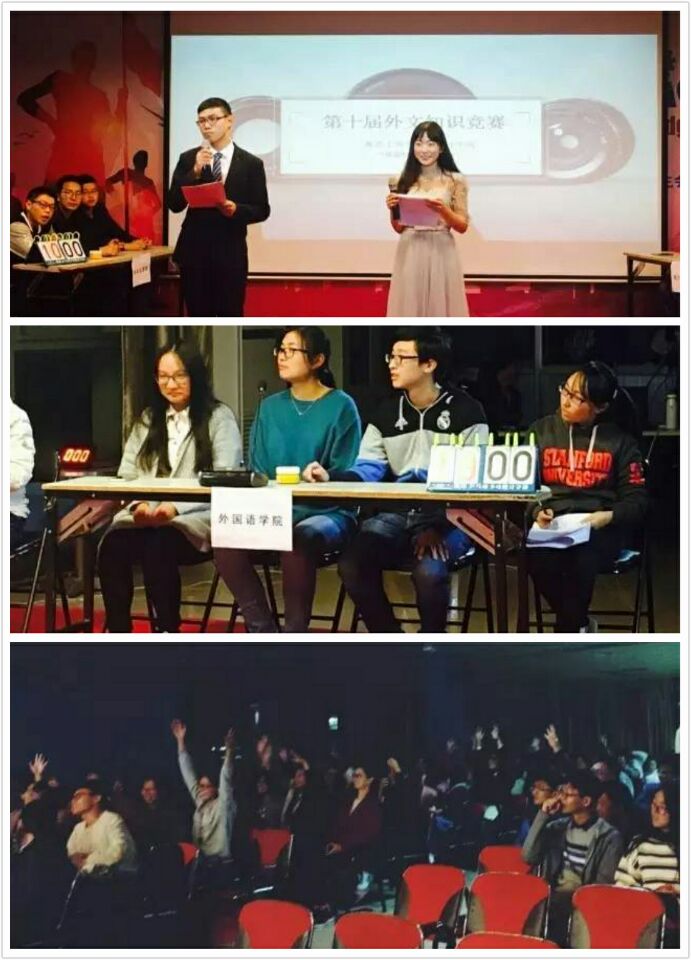 11月13号晚,外国语学院举办的外文知识竞赛决赛在东区大学生活动中心举行。外国语学院、兄弟院系分团委学生会主席及本院全体学生共同观看了比赛。